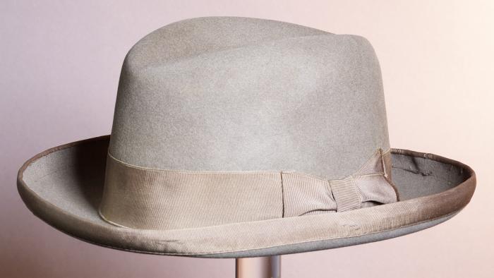 Сиво-зелено овално борсалино, с повдигнат ръб, гросгрейн лента, кожен вход и вдлъбнатина в средата на купола, 1915 – 1925 г. (Photo: Borsalino, CC BY-SA 3.0, via Wikimedia Commons)