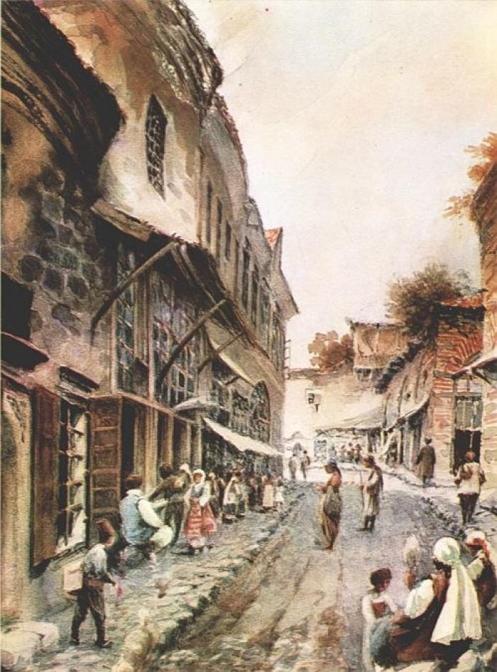 „Златарската чаршия“, автор: Йозеф Обербауер, 1890 (Credit: Joseph Oberbauer, CC BY-SA 4.0, via Wikimedia Commons)