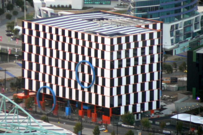 Архитектура, вдъхновена от същата илюзия, в Мелбърн Докландс, Австралия, 2006 (Credit: Joe.Bekker at the English-language Wikipedia, CC BY-SA 3.0 , via Wikimedia Commons)