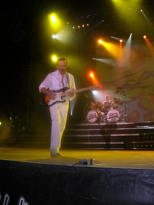 Доди Баталия със своя Stratocaster на концерта Pooh 40 La Grande Festa в Катандзаро през 2006 г. В дъното: Стефано Д'Орацио (Credit: Stefano.1991, CC BY-SA 4.0, via Wikimedia Commons)