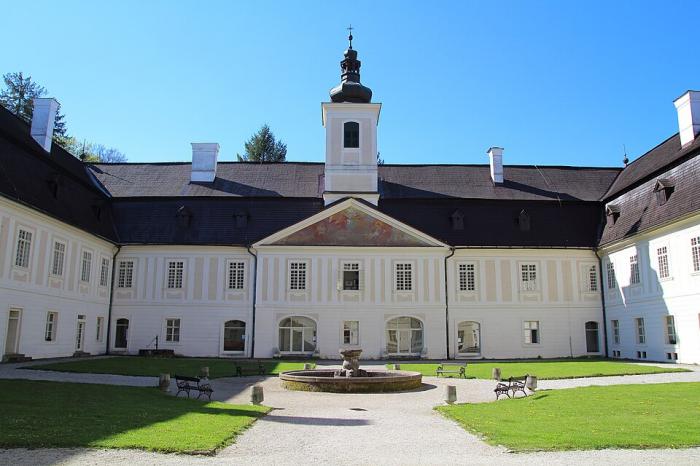 Двуетажната сграда с четирикрилен план и централен двор притежава всички характеристики на представителна резиденция. Сводестият подлез с изглед към двора води до представително стълбище, чиято архитектура е допълнена от картини и скулптури, отразяващи влиянията на италианското и австрийското изкуство. От южното крило на имението се вижда параклис, богато украсен със стенописи на къснобароково илюзионистично пространство с ясна гледка. Това е параклисът „Успение Богородично“ от 1722 г.Параклисът е подчертан и отвън по фасадата, която завършва със стенопис, свързващ църковната тема с мотива от картината на ктитора. Рисуваната украса на параклиса е в духа на къснобароковия илюзионизъм. Автор на стенописите от 1750–1752 г. е Антон Шмит. На първия етаж на имението има няколко разкошни стаи, които са минимално засегнати от по-късните модернизационни интервенции от 1816 и 1860 г. Параклис в рококо с богата кована желязна решетка, разположен на кръстопътя в селото, където пътят завива към имението, също датира от времето на построяването на имението.