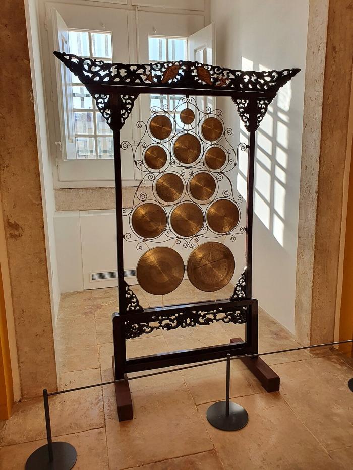 13 гонга Yúnluó, показани на изложбата „Китайски музикални инструменти“ в Националната дворцова галерия в град Мафра, Португалия, 2023 г. (Credit: GualdimG, CC BY-SA 4.0, via Wikimedia Commons)