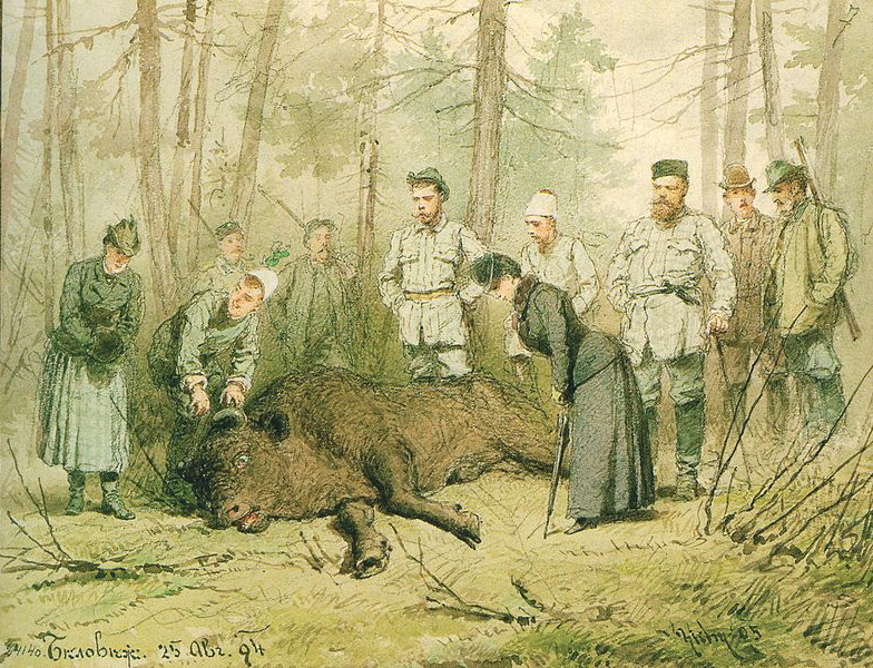 Александър III на лов в Беловежката гора, 25 август 1894 г. Автор: Михаил Зичи (1827–1906) (Credit: Mihály Zichy, Public domain, via Wikimedia Commons)
