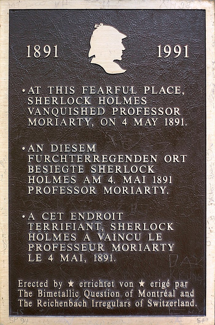 „На това страшно място Шерлок Холмс победи професор Мориарти, на 4 май 1891 г."