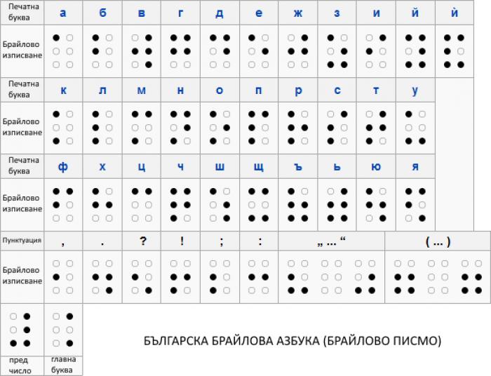 Благодарение на брайловата азбука слепите хора могат да четат с пръсти. Само чрез шест точки може да бъде представена всяка буква и знак от азбуката.
