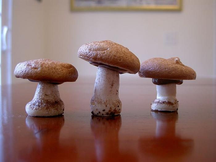 Целувките може да се оформят в причудливи форми, като гъби, или да се поставят в хрупкава кошница, която се пече и напълва с кекс, плодове или цветя.