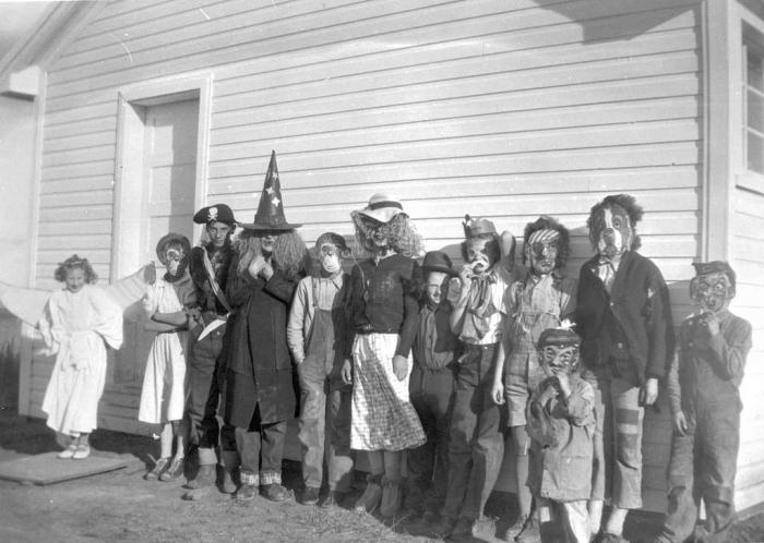 Хелоуин парти в училище в Кеърни, Небраска, 1908 г. Credit: Solomon D. Butcher (Photographer), Public Domain, Picryl