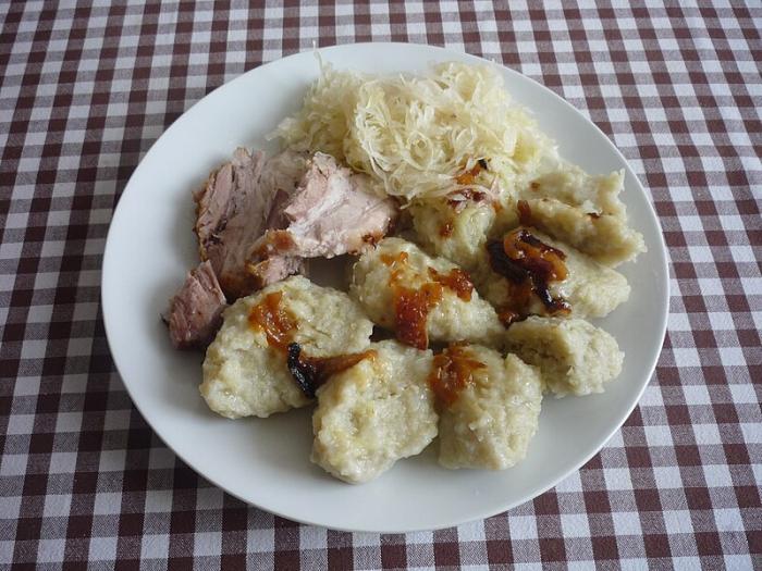 Свински корем на фурна, космати кнедли и кисело зеле. (Credit: Pohled 111, CC BY-SA 4.0,