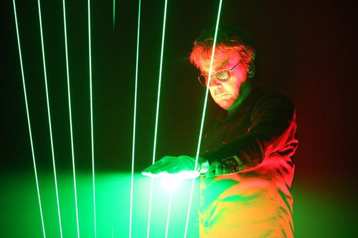 Жан-Мишел Жар свири на лазерна арфа на концерт в Братислава, 2016 г. (Credit: Milan Csaplár, CC BY-SA 4.0,