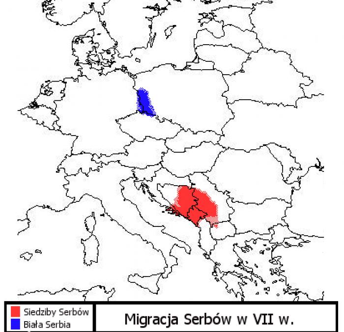 Миграция на сърбите през VII век. (Credit: User:Nexm0d, Public domain,