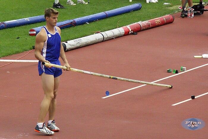 Френският състезател Жан Галфион се подготвя за изпълнение на овчарски скок (Credit: Finneye, CC BY-SA 2.0,