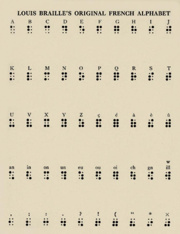 Благодарение на брайловата азбука слепите хора могат да четат с пръсти. Само чрез шест точки може да бъде представена всяка буква и знак от азбуката.