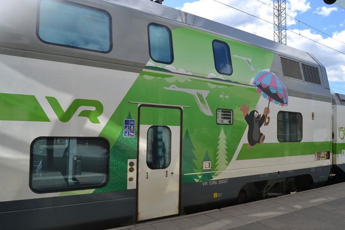 Къртичето, изобразено върху влак, спрял на перона на Централната жп-гара във финландския град Ювяскюля. (Credit: Antti Leppänen, CC BY-SA 3.0, via Wikimedia Commons)