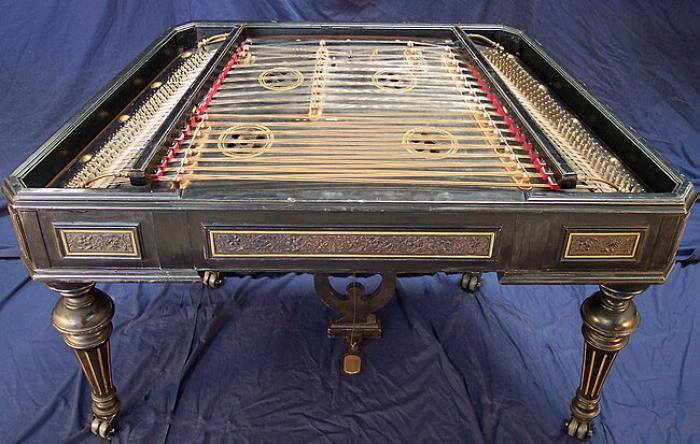 Изглед отгоре и зона за свирене на модерен концертен цимбал (Credit: Xylosmygame at English Wikipedia, CC BY-SA 3.0,