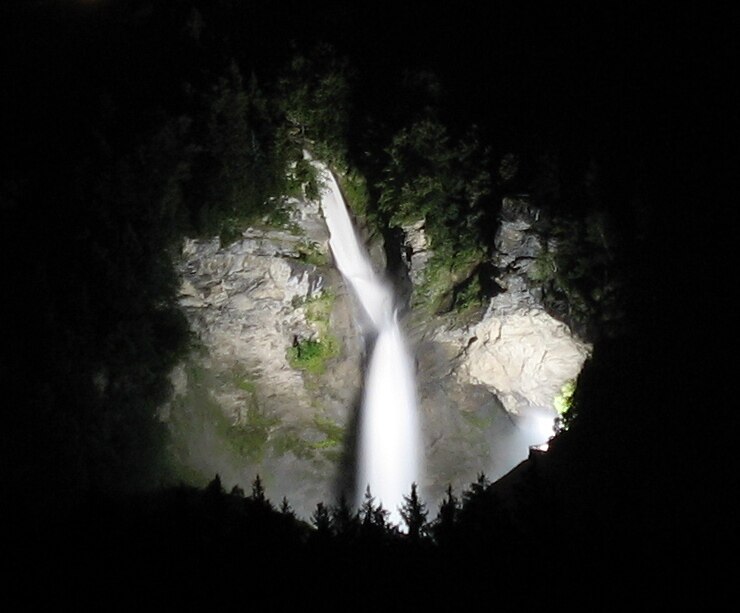 Водопада Райхенбах през нощта (Credit: Jaapkievit, CC BY 3.0,