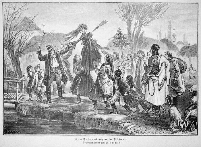 „Извеждане на смъртта в Моравия“, рисунка на В. Грьоглер, 1887 г. (Credit: Wilhelm Grögler, Public domain,