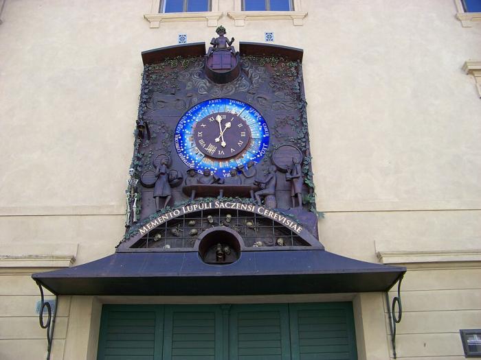 Този часовник, представляващ световен уникат, е част от Храма на хмела и бирата в чешкия град Жатец.