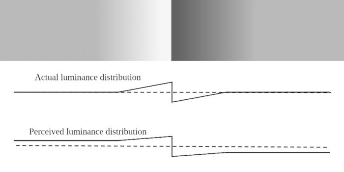 Това явление е подобно на явлението, наричано едновременен контраст и ленти на Мах, но се различава от него по два важни аспекта: