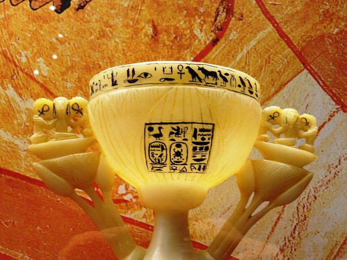 Лотосова чаша на Тутанкамон (реплика), изложба във Франкфурт на Майн, 2012 (Credit: Sat Ra, CC BY-SA 3.0, via Wikimedia Commons)