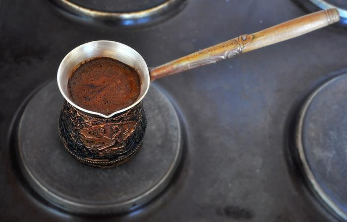 Наливане на турско кафе в медно джезве, 2013 (Credit: Eaeeae, CC BY-SA 3.0, via Wikimedia Commons)