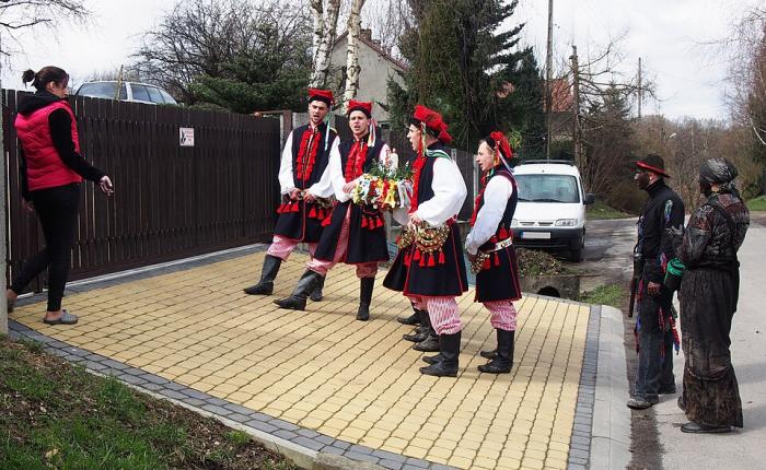 Участникът в ритуала, облечен като Сюда Баба, чака жителите да решат дали да ги пуснат вътре. Ледница Горна, 2015 (Credit: Agnieszka Kwiecień, Nova, CC BY-SA 3.0 PL, via Wikimedia Commons)
