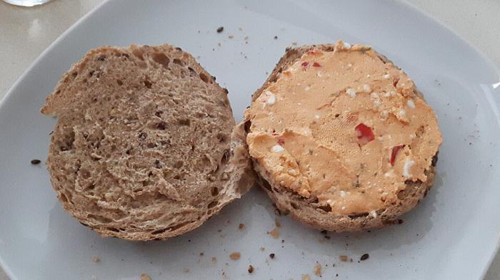 Липтауер, намазан на хляб. (Credit: FakirNL, CC BY-SA 4.0, via Wikimedia Commons)