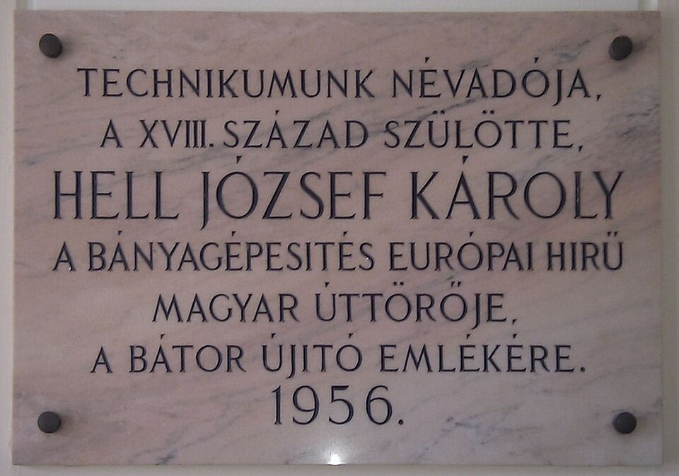 Мемориална плоча на Йозеф Карол Хел в гимназията в град Естергом (Credit: Villy, CC BY-SA 3.0, via Wikimedia Commons)